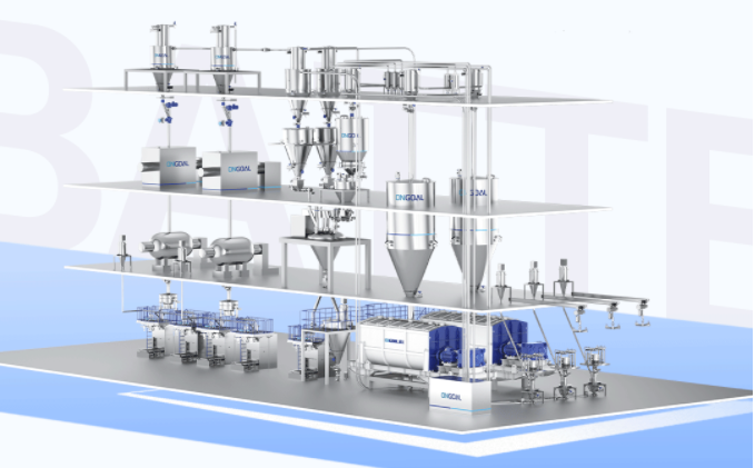 我們從解包投料、儲存破拱、氣力輸送、計量配料到混合攪拌的整個工藝流程,全方位多角度考慮生產的潔凈、便利與安全,為客戶提供一整套食品級原料處理一站式解決方案。